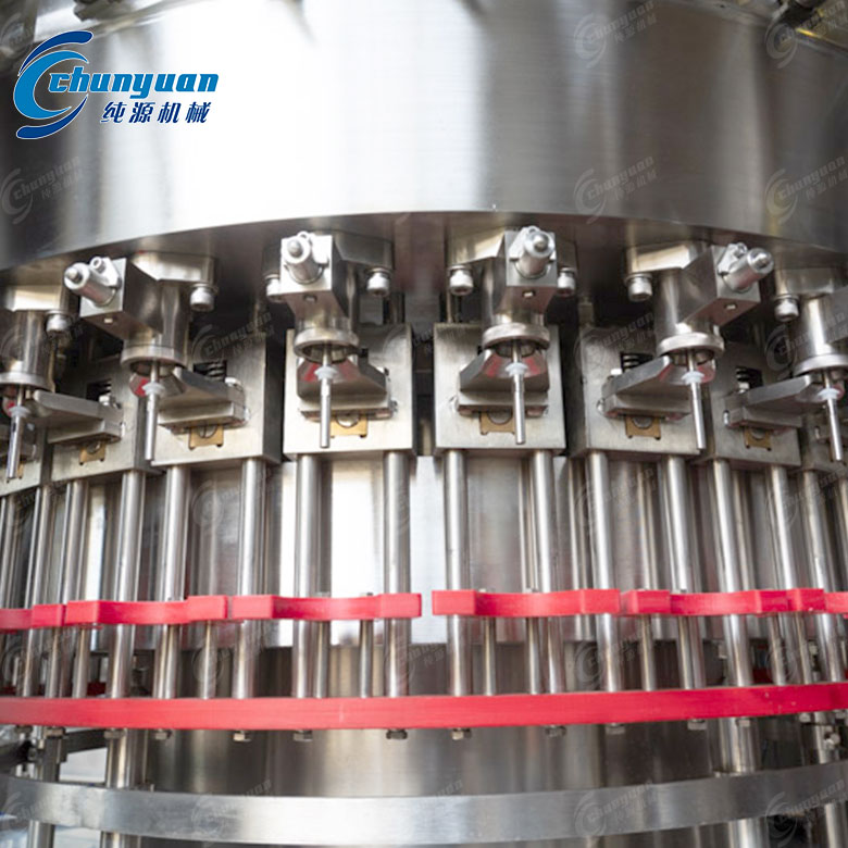可樂灌裝機(jī):采用等壓灌裝原理,包括沖洗、灌裝、封蓋等功能,適用于玻璃瓶的灌裝。