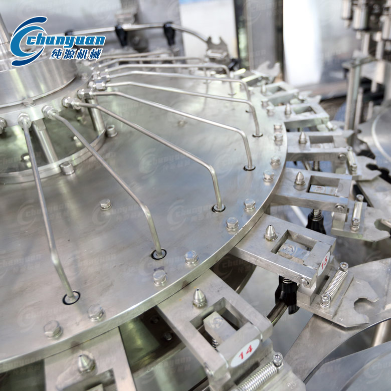 酵素果蔬汁灌裝設(shè)備是純源機(jī)械采用卡瓶頸傳動技術(shù),實現(xiàn)全自動沖瓶、灌裝、封蓋等工序;該酵素飲料機(jī)械自動化程度高;配有完善的溫度控制系統(tǒng)和回流系統(tǒng),設(shè)有完善的灌裝設(shè)備自動清洗系統(tǒng)及控制程序,與液體接觸的零件全部采用優(yōu)質(zhì)不銹鋼材料及食品級橡膠。