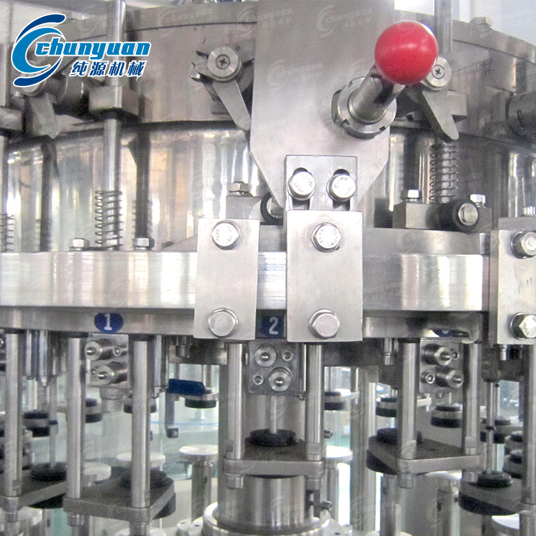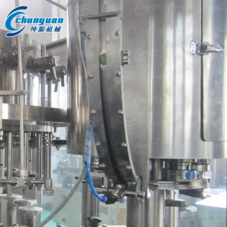 組內(nèi)一次性完成洗瓶、灌裝、封蓋三道工序,其瓶子損壞小、傳動(dòng)準(zhǔn)確平穩(wěn)、瓶型更換快捷。特殊規(guī)劃的沖瓶機(jī)瓶夾結(jié)實(shí)耐用,不接觸瓶口螺紋部位,防止瓶口的二次污染。與液體接觸的零部件均采用優(yōu)質(zhì)不銹鋼材料或食品級(jí)工程塑料,相符合國(guó)家食品衛(wèi)生標(biāo)準(zhǔn)。