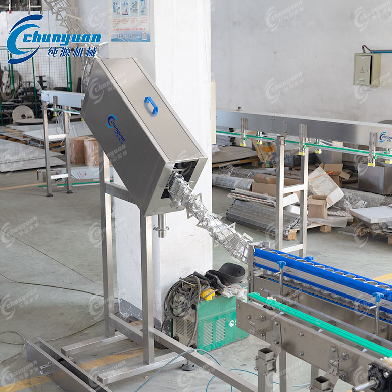 易拉罐卸垛設(shè)備通過特定的機械結(jié)構(gòu),將堆疊于棧板上的空罐,由下而上一層層的提升并推至輸送機上。整個過程由自鎖式升降系統(tǒng)裝置控制,能單獨調(diào)整上升或下降的速度,以適應(yīng)不同的操作需求???。卸罐動作通常由電機帶動鏈輪、鏈條裝置進(jìn)行,整層的空罐被推至網(wǎng)式輸送機上,然后回歸至準(zhǔn)備位置,繼續(xù)將下一層推出???。