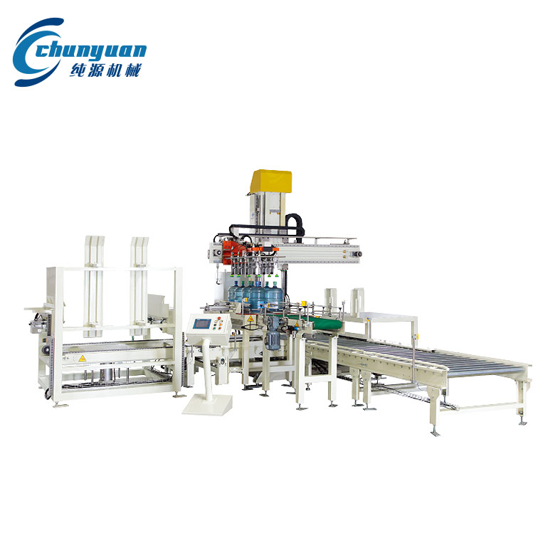 針對(duì)現(xiàn)有桶裝水套袋工藝的缺點(diǎn),純?cè)礄C(jī)械自主開發(fā)提供新型的提桶套袋機(jī)履帶式結(jié)構(gòu)不傷瓶口。結(jié)構(gòu)筒單、有效提高生產(chǎn)效率, 降低生產(chǎn)成本。