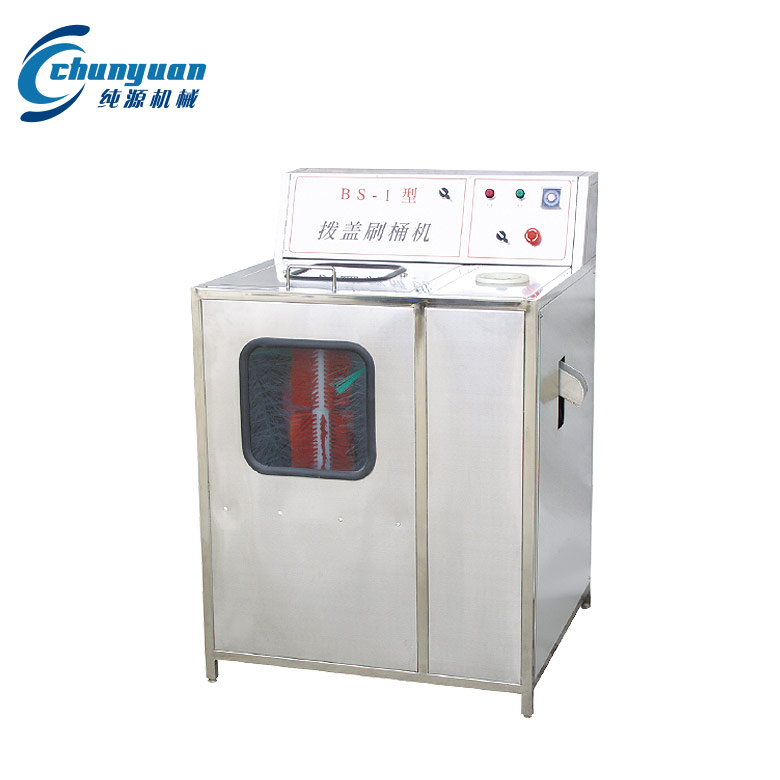 全自動(dòng)外刷桶機(jī)由不銹鋼機(jī)架、封板(不銹鋼〉、主旋轉(zhuǎn)毛刷、毛刷調(diào)速電機(jī)、撥輪調(diào)速電機(jī)、捅底部旋轉(zhuǎn)毛刷、撥輪結(jié)構(gòu)、 沖洗水泵、噴淋室等組成。全自動(dòng)外刷桶機(jī)采用優(yōu)質(zhì)不銹鋼制作,耐腐蝕,易清洗。主要?dú)饴吩捎门_(tái)灣亞德克產(chǎn)品,該機(jī)結(jié)構(gòu)緊湊, 工作效率高且穩(wěn)定可靠,自動(dòng)化程度高,操作簡(jiǎn)單。