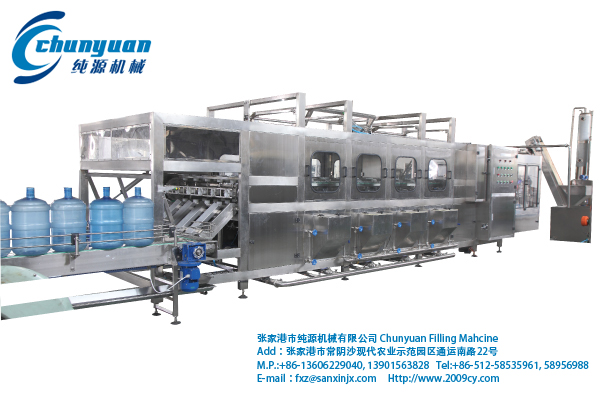 張家港市純?cè)礄C(jī)械研發(fā)制造的CYT-300系列桶裝水灌裝設(shè)備集自動(dòng)洗瓶、自動(dòng)上瓶、灌裝、套蓋、壓蓋、成品送出于一體。桶裝水灌裝設(shè)備適用于灌裝3加侖、5加侖水桶的全......