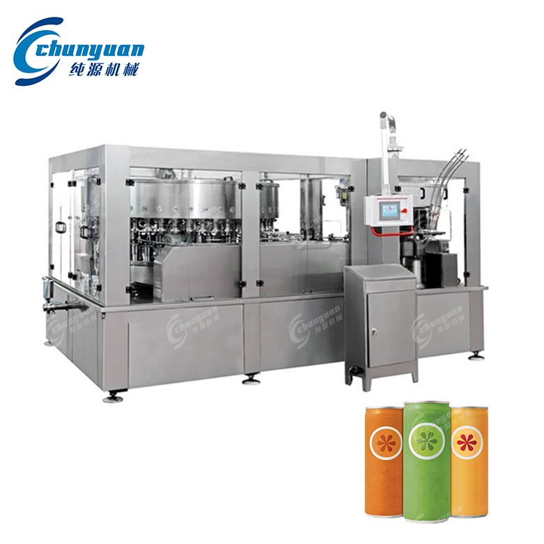 果汁易拉罐灌裝機(jī)是專為鋁制或馬口鐵易拉罐(通常容量為 200ml、250ml、330ml、500ml)設(shè)計(jì)的全自動(dòng)高速灌裝設(shè)備,適用于非碳酸、熱灌裝型果汁、茶飲料、植物蛋白飲料、功能性飲品等。由于易拉罐不耐高壓且需常溫或熱灌裝,其灌裝工藝與碳酸飲料(如啤酒、汽水)有顯著區(qū)別。果汁易拉罐灌裝通常采用 “UHT滅菌 + 熱灌裝 + 封罐 + 倒罐殺菌 + 冷卻” 工藝,以實(shí)現(xiàn)商業(yè)無菌和常溫長(zhǎng)期保存(保質(zhì)期6–12個(gè)月)。
